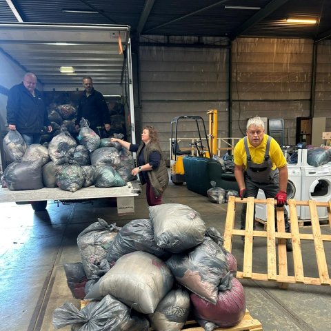 Een keer per 2 maanden ruimt de Kringloopwinkel een deel van de niet verkochte spullen op.